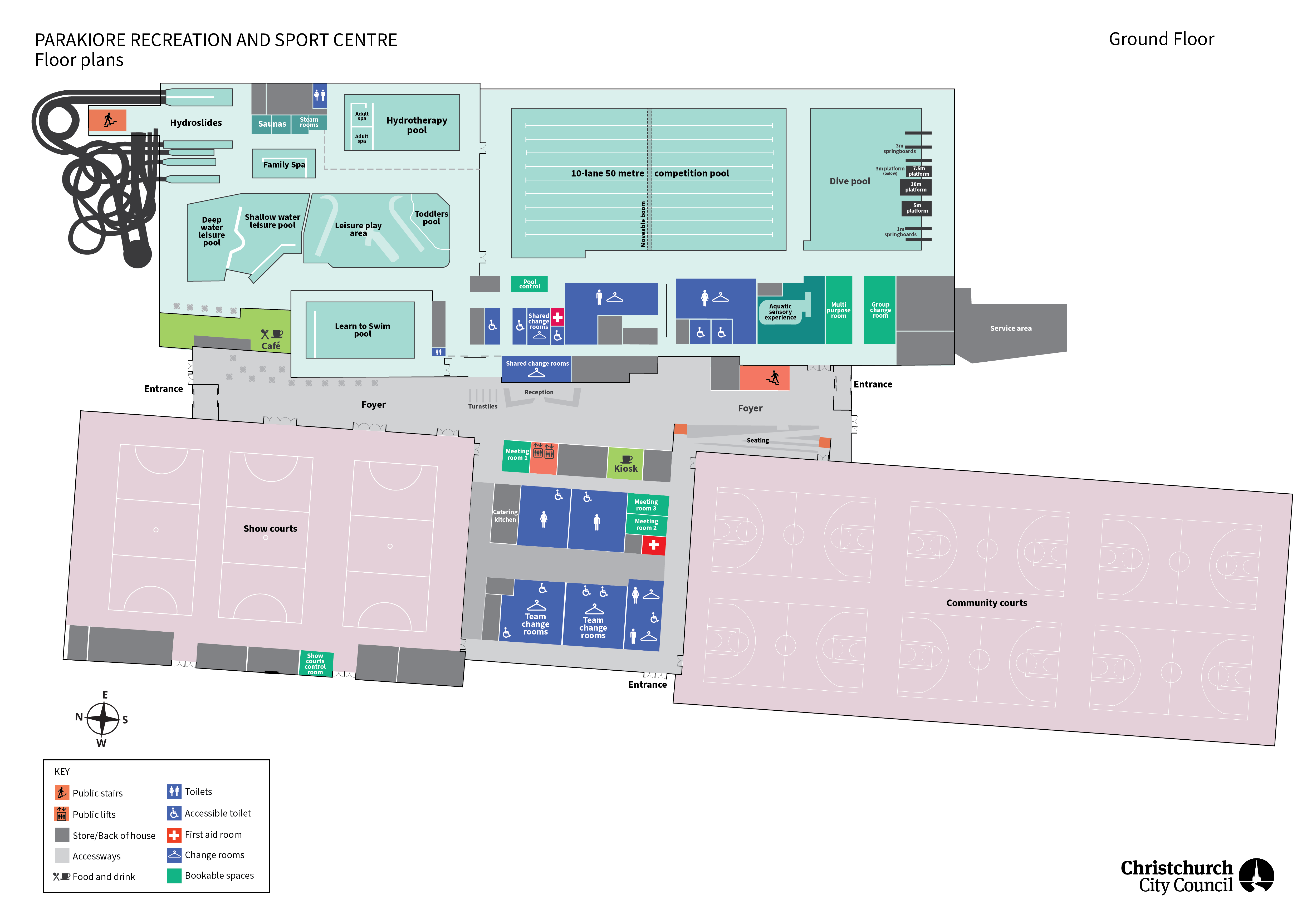If you struggle with the busy nature of Parakiore, you are welcome to use the Moorhouse Avenue entrance and use the Reset Space to the left of the entrance. This low-arousal entry point allows customers to reset and / or alert Customer Experience at reception or the Sensory Aqua Centre staff of their arrival either by phone or by pre-arrangement. You can then be supported through the building either by staff through staff access points or unsupported once you have had an opportunity to reset and continue. This may be useful for customers wishing to use the Sensory Aqua Centre.